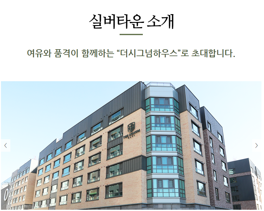 서울 강남에 위치한 더 시그넘 하우스는 24시간 간호사 상주와 물리치료, 재활치료 서비스를 제공하는 특화된 실버타운입니다. 서울 한복판에 자리잡고 있어 편리한 접근성을 자랑하며, 삼성서울병원, 강남세브란스병원, 분당 서울대병원 등 유명 의료기관이 인접해 있어 노후 생활에 필요한 의료 서비스를 원활히 이용할 수 있습니다.