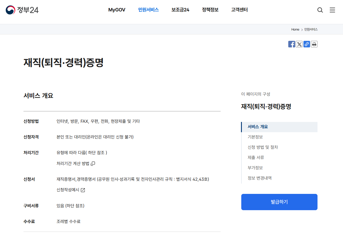 아래에서 경력증명서 인터넷 발급 받을 수 있으니 참고하시길 바랍니다.