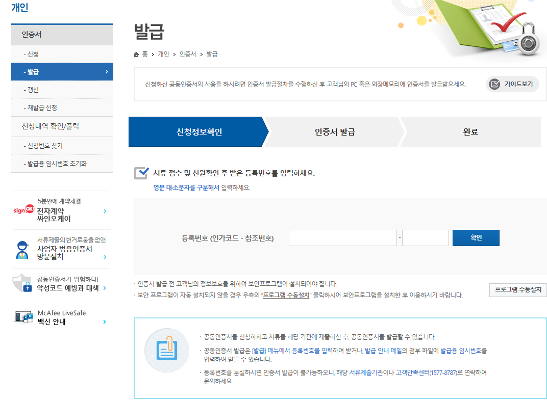 - 신청서 작성: 금융기관 또는 인증서 발급 기관의 (은행)홈페이지에서 신청서를 작성합니다.