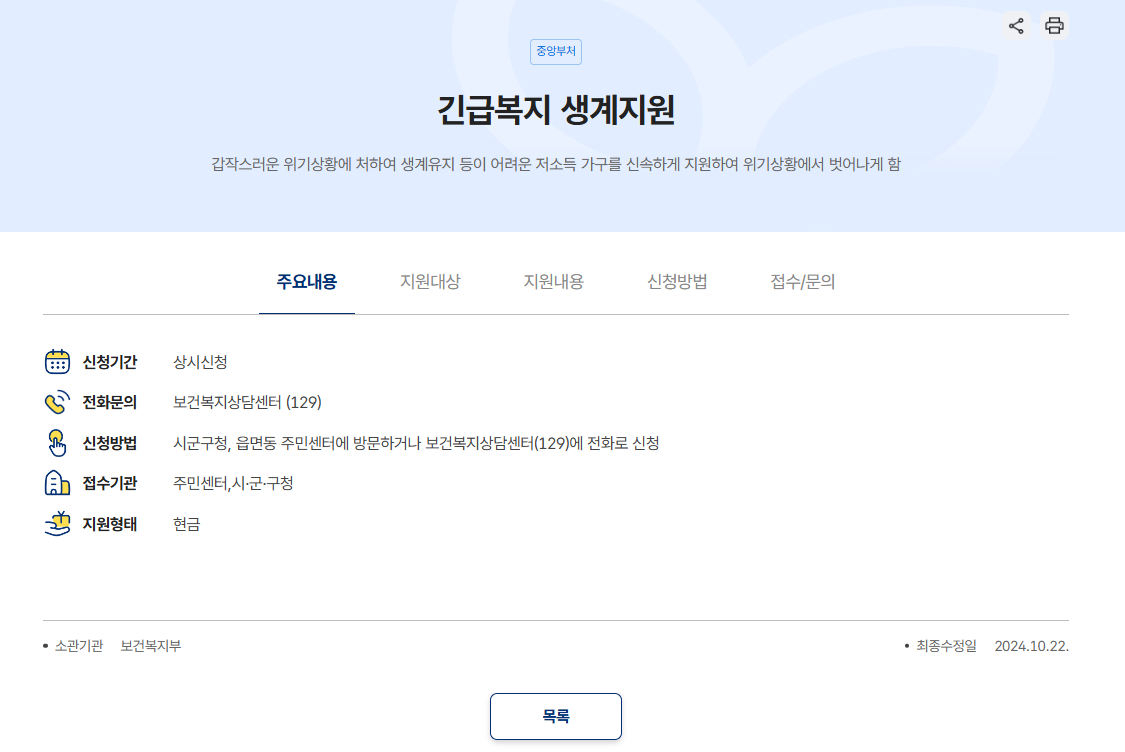 아래 링크에서 긴급생계지원금 즉시 신청해보시길 바랍니다 !