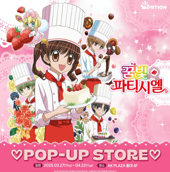 꿈빛파티시엘 팝업스토어 예약하기 굿즈 안내입니다. 국내에서도 꿈빛파티시엘 팝업스토어가 개최할 예정입니다. 3월 27일~ 4월 22일까지 홍대 AK 플라자 홍대에서 열리는데요. 다양한 굿즈 상품들과 이벤트까지 마련할 예정입니다.