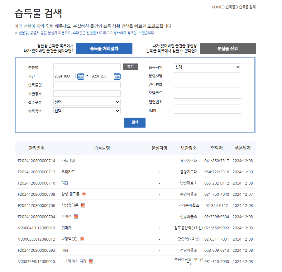 경찰청 유실물 센터 조회하기