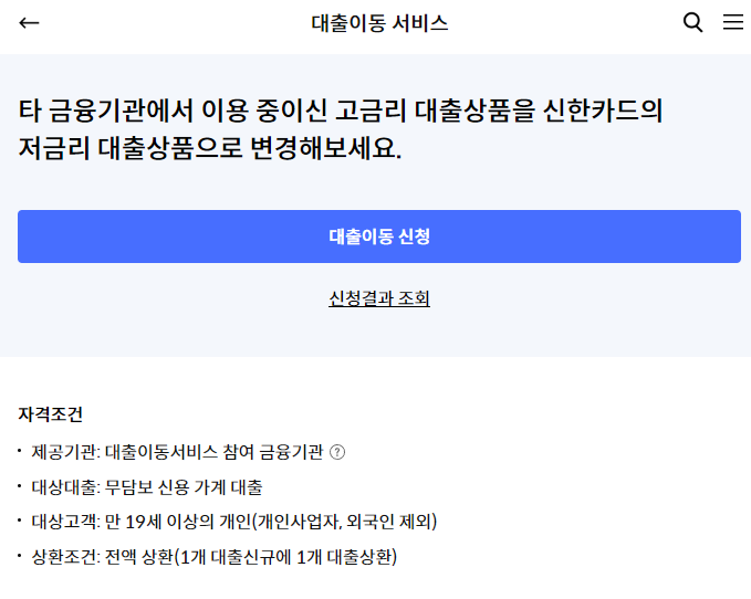 신한카드 원스탑대환대출