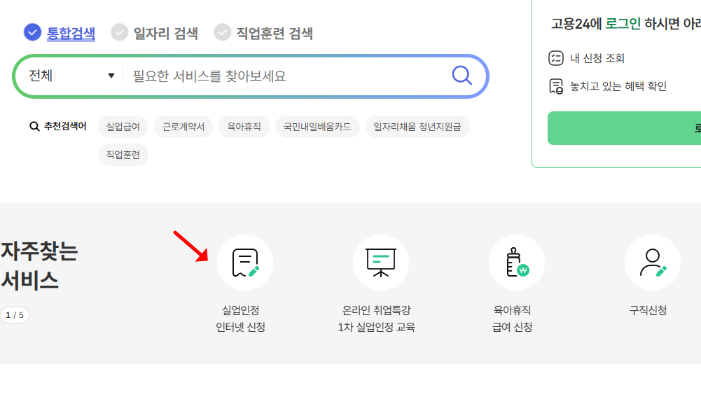 먼저, 고용보험 홈페이지에 접속하여 ‘실업 인정 인터넷 신청’을 클릭합니다. - 온라인 취업 특강 결정하기