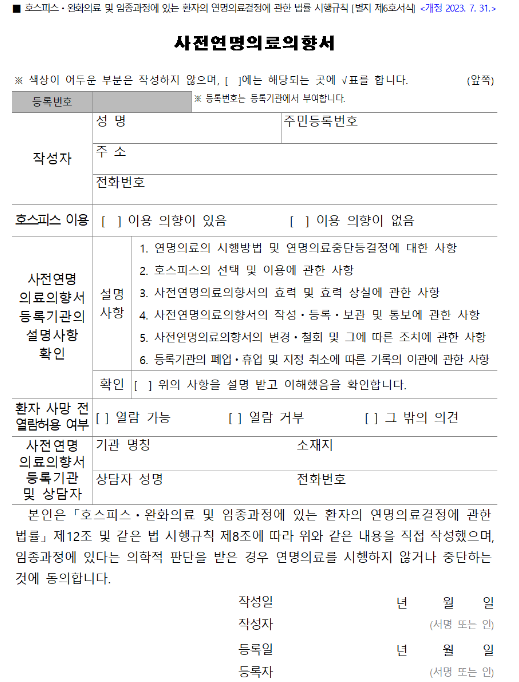 연명치료 거부 신청