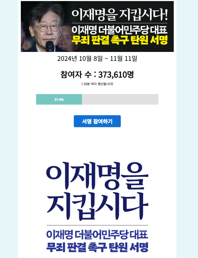 아래에서 이재명 무죄탄원 촉구 탄원 참여할 수 있으니 참고하시길 바랍니다.