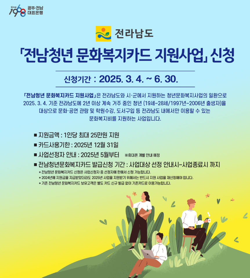 순천, 나주, 광양, 여수, 목포는 광주은행 홈페이지에서 전남 청년문화복지카드 신청할 수 있습니다.