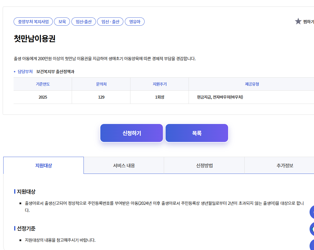 - 2024.1.1 이후 태어난 첫째: 200만 원