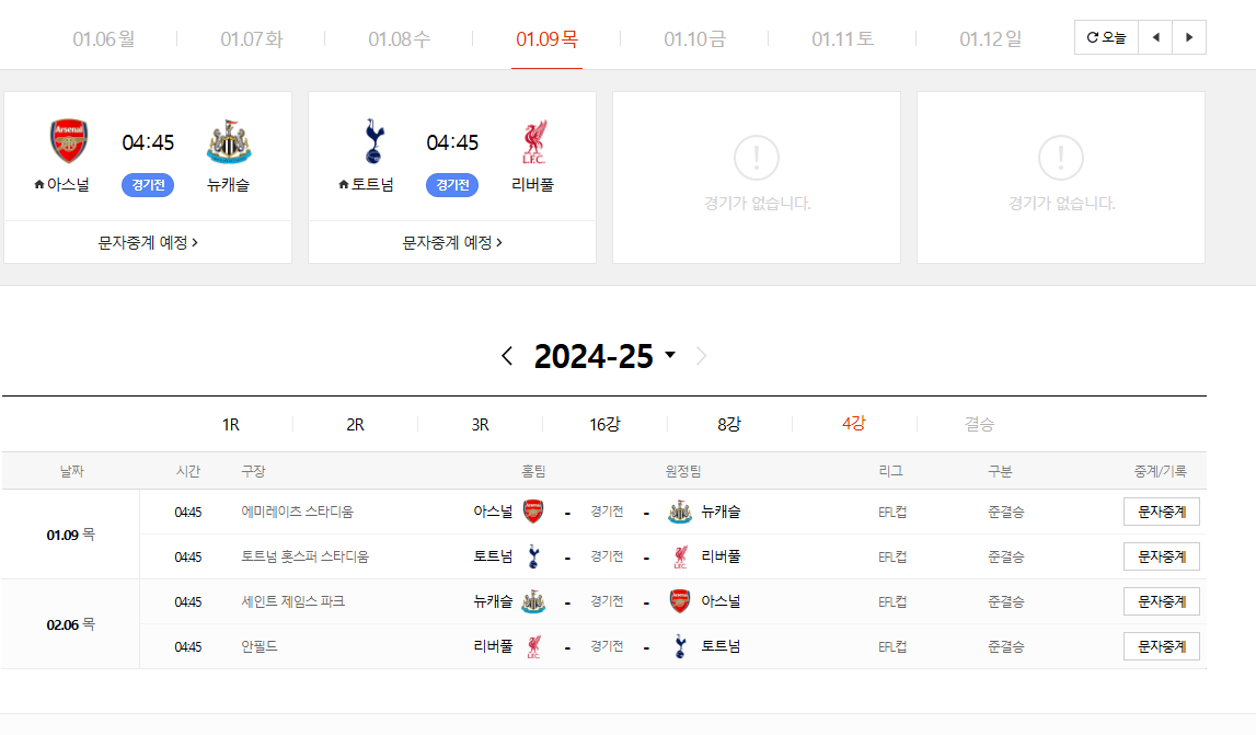 - 1차전: 2024년 1월 9일 새벽 4시 45분 (토트넘 홋스퍼 스타디움)