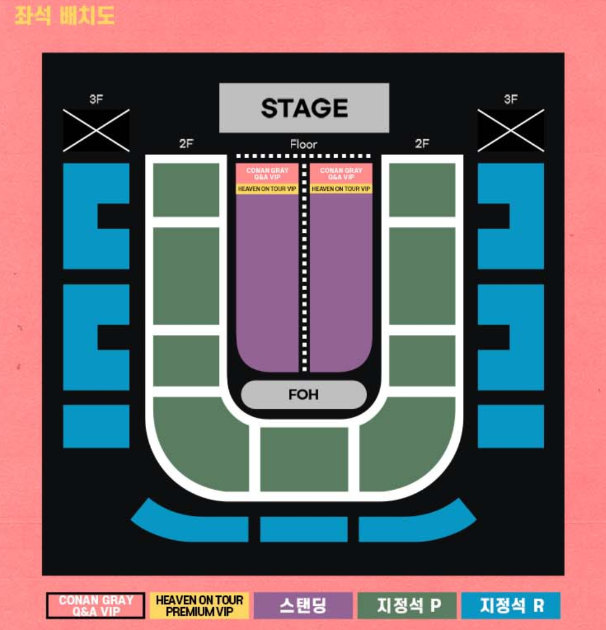 한 장의 스탠딩 구역 입장권 공연 전 우선 입장의 기회 공식 굿즈 우선 구매 권한 코난 그레이와의 질의응답 시간 VIP 전용 한정판 굿즈와 가방 VIP 전용 라미네이트 카드