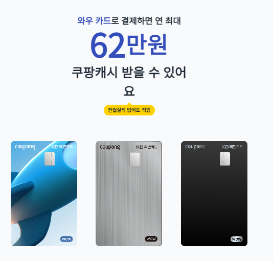쿠팡 와우카드는 kb 국민카드에서 출시하였습니다. 그래서, kb 국민카드 공식 홈페이지에서 발급 및 신청할 수 있습니다.