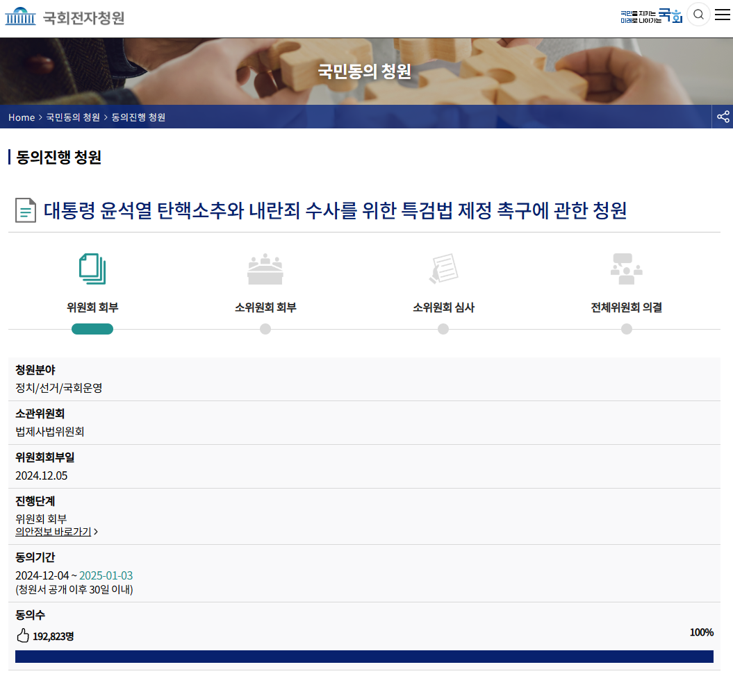 탄핵 투표 윤석열 퇴진 청원 주소 바로가기 안내입니다. 탄핵소추안 발의가 정식으로 진행되며 국민들의 탄핵 투표를 실시하고 있습니다. 1월 5일까지 청원을 받을 예정이며, 약 40만명이 동의한 상태입니다.