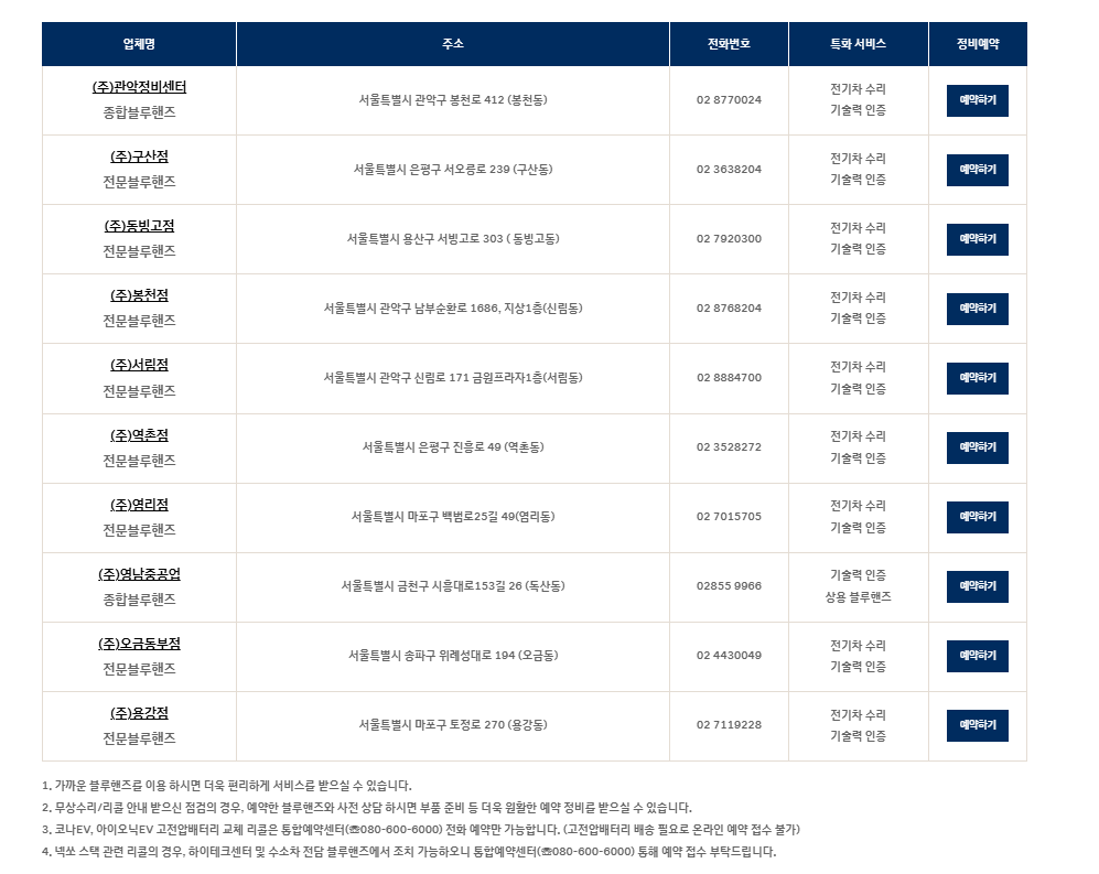 아래 통해 현대 블루핸즈 예약하시고, 대기 없이 간편함게 점검 받아보시길 바랍니다.