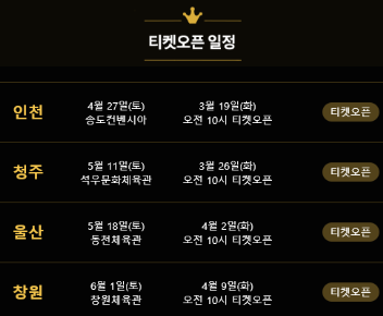 2024년 4월 27일부터 7월 6일까지의 공연 스케줄이 공개되었습니다! 그 외 하반기에 예정된 공연 장소는 아직 발표되지 않았으며, 나훈아 콘서트 티켓 예매는 2024년 3월 19일(화)부터 순차적으로 시작될 예정입니다. 예스 24 티켓에서 예매 가능하니 참고하시기 바랍니다.
