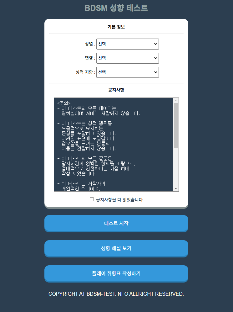 아래 링크에서 BDSM 성향 테스트 할 수 있습니다.