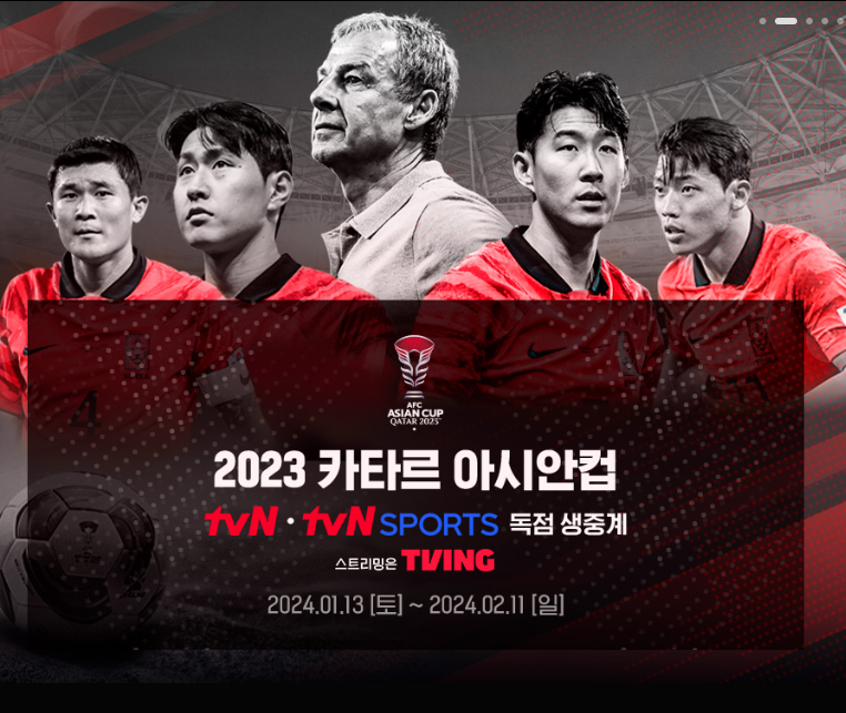 이번 아시안컵 축구중계는 tVN, tVN SPORT에서 방송될 예정입니다. 만약, 휴대폰으로 시청하실 예정이라면 티빙, 쿠팡플레이에서 실시간 시청이 가능합니다. 해설은, 박주호, 김환이고, 캐스터는 배성재 아나운서입니다.